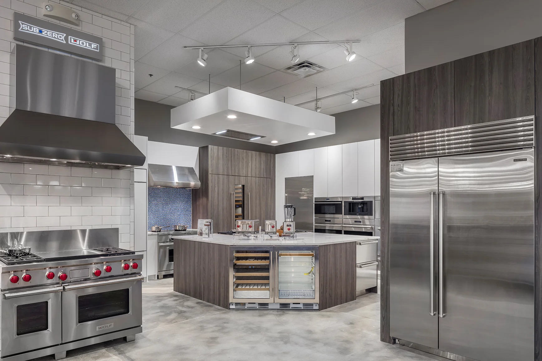 We were approached by Roth Distributing to design / build out the casework for a new Subzero / Wolf display kitchen. This is located in the Factory Direct Appliance Showroom in North Kansas City.
